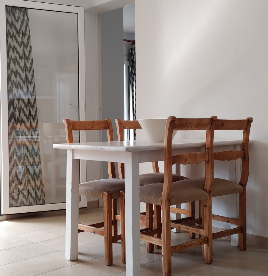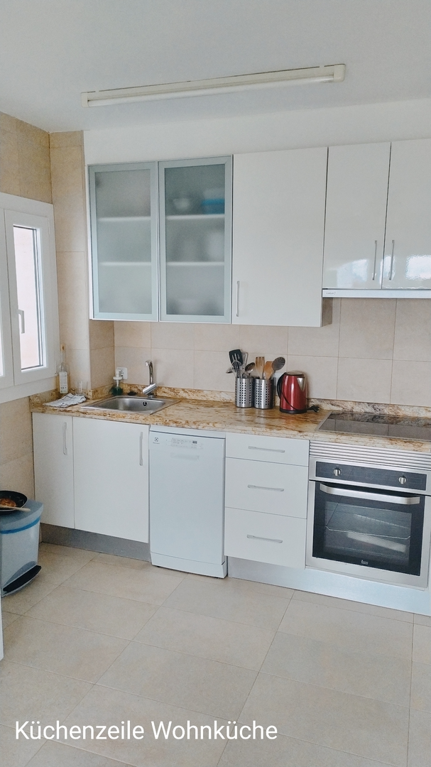Die saubere, helle und vollständig ausgestattete Wohnküche bietet alle Annehmlichkeiten für gutes Kochen und Backen sowie ein erholsames Wohnen. Oder Sie lassen sich auch mal in den Restaurants und Cafes der Cala Santanyi und im Winter im Dorf Santanyi verwöhnen.