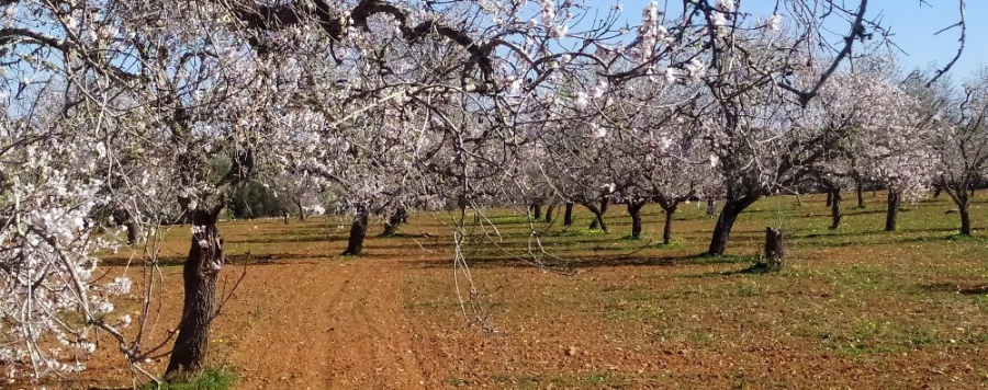 Mandelblüte nahe der Wohnung im Februar erleben - auf kleiner schöner Straße nach Santanyi (hier nahe der Wohnung)