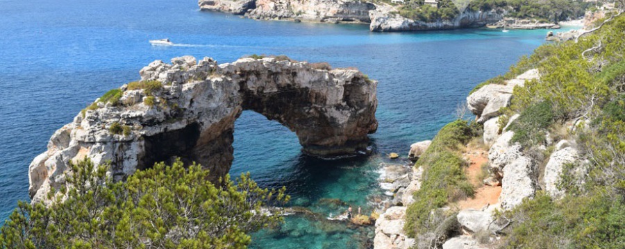 Die Cala Santanyi ist eine eingeschnittene, von Felsen und Bäumen umgebene Bucht. Hier finden Sie Entspannung aber auch alle Annehmlichkeiten eines mediteranen Lebens.